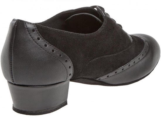 Diamant dames trainer dansschoenen zijn handgemaakt. Deze gesloten dansschoenen zijn gemaakt met een 4-gaats vetersluiting. Deze dansschoen met ronde neus is uitgevoerd met een Diamant Comfort voetbed en een stabiele blokhak van 2,8 cm met een zeer groot profieloppervlak. De binnenvoering is een ademende, antibacteriële en vochtabsorberende microvezel van eersteklas Italiaanse makelij. Zachte leersoorten van de hoogste kwaliteit worden gebruikt voor de bovenmaterialen van zwart gladleer gecombineerd met zwart suède.