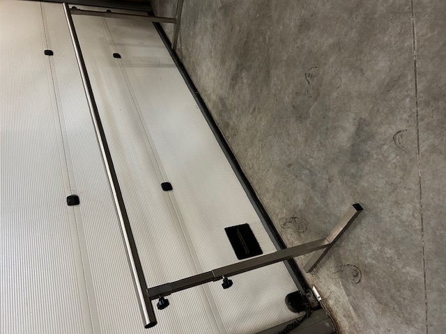 Balletbarre is in hoogte te verstelbaar en gemakkelijkk te verplaatsen. ( de 3 meter barre wiigt nog geen 10KG)