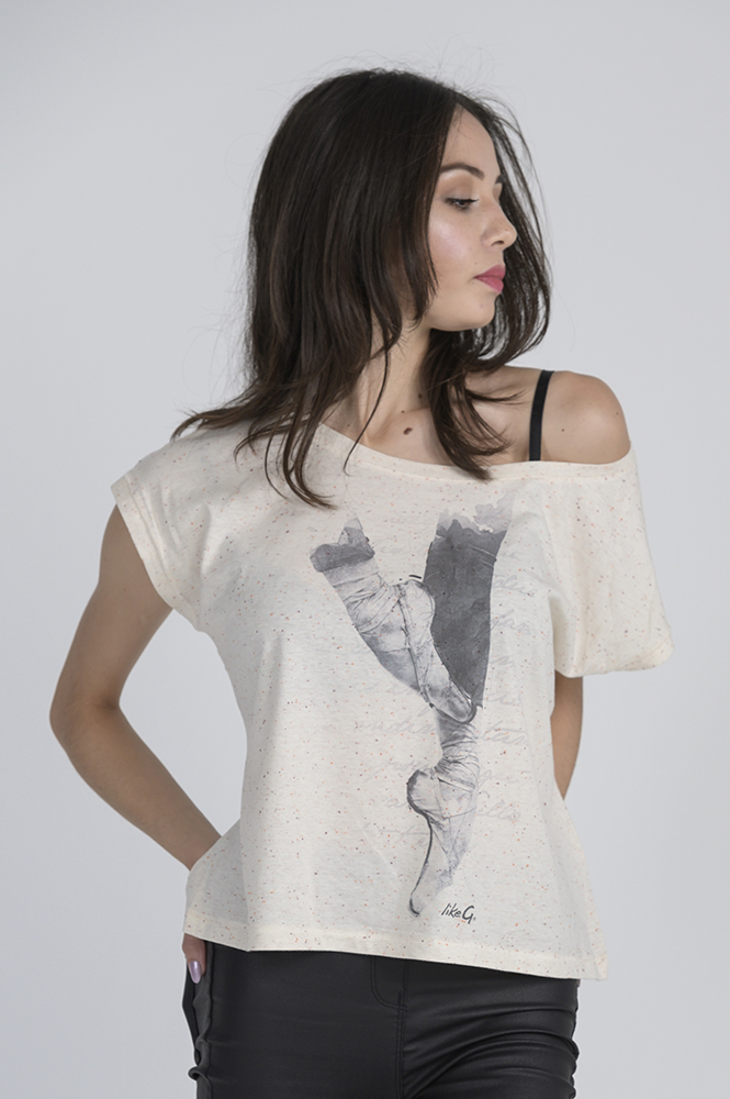 Off-white kleur met mooie pointes opdruk.