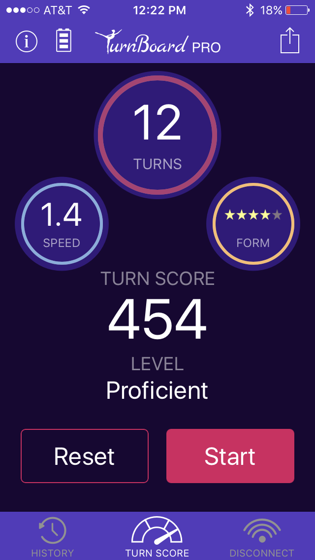 De app berekent automatisch je persoonlijke Turn Score . scores variëren van 1 (Rookie) tot 1.000 (Wereldklasse).