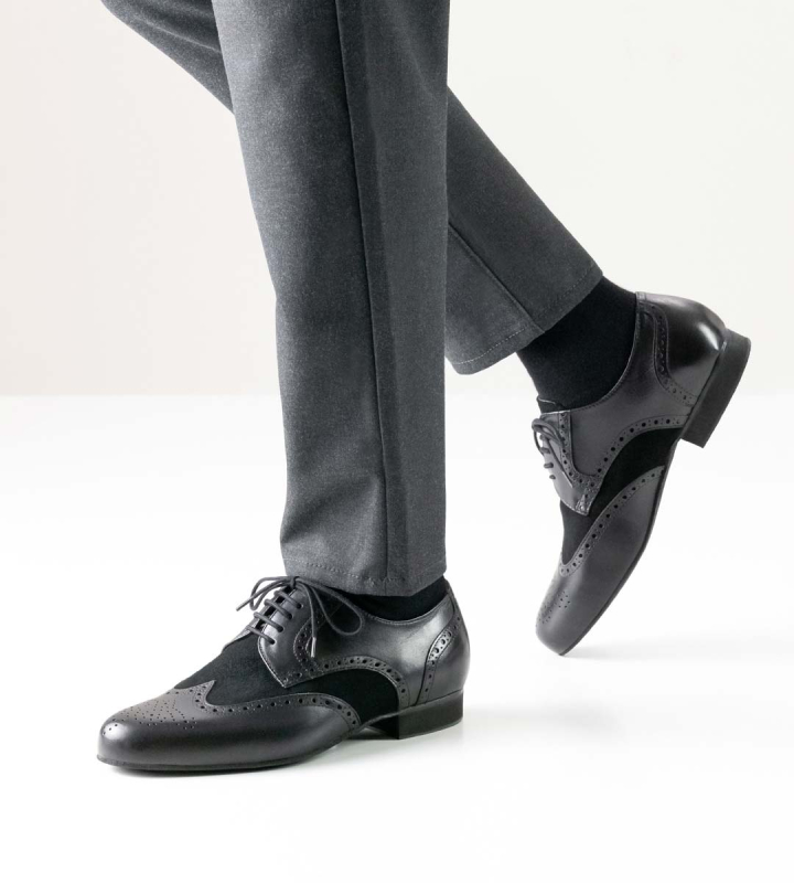 Klassiek-elegante Werner Kern heren dansschoen in nappa en suède leer. De met de hand gevlochten vleugelkap geeft deze schoen zijn stijlvolle uitstraling. De comfortabele 5-gaats vetersluiting zorgt voor een optimaal stabiele en comfortabele pasvorm en houvast. De schoen is gevoerd met zacht kalfsleer van handschoenkwaliteit.